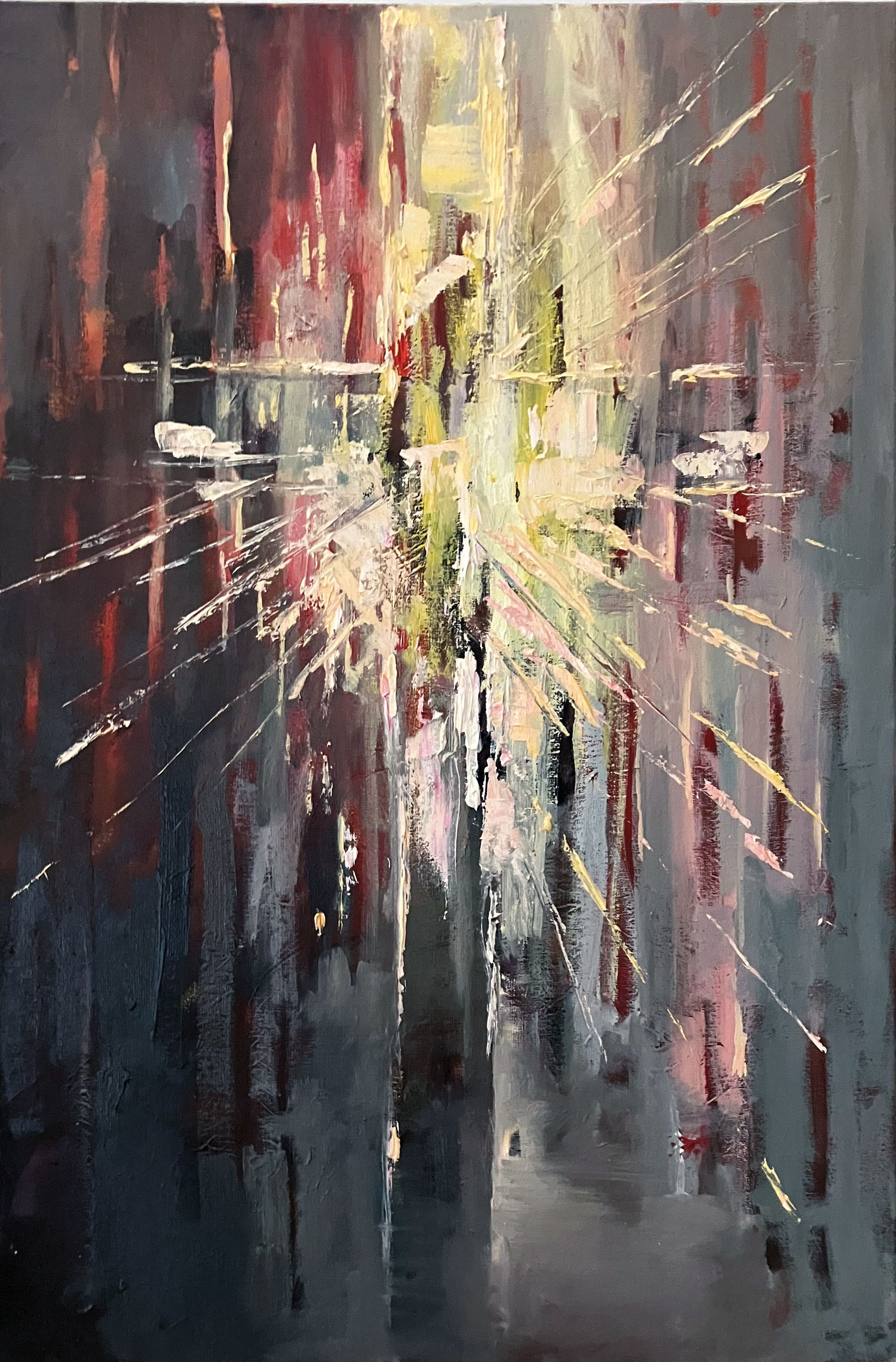 „Dwa światy” to ekspozycja szczególna, inna niż wcześniejsze. Autor po raz pierwszy ośmielił się ujawnić dwie bliskie mu perspektywy oglądu rzeczywistości. Jak dotąd konfrontował odbiorców swojego malarstwa przede wszystkim z realizmem, odbijając w obrazach dostrzeżone w świecie zakątki piękna, które służyły mu m.in. do wyrażania harmonii natury i akcentowania źródeł, z jakich może czerpać człowiek. Tym razem jednak utrwalony wyrazistym kolorem realizm połączył z nurtem odrywania sztuki od świata widzialnego, skłaniając odbiorców do samodzielnego poszukiwania sensu niektórych jego dzieł. Rzeczywistość i abstrakcja to właśnie tytułowe dwa światy, które – jeśli się im bliżej przyjrzeć – ujawniają wzajemną relację, nie tyle koegzystują, ile się nawzajem uzupełniają. A tym, co je łączy, jest ukryty i w jednym, i w drugim potencjał do kontemplacji. W nim właśnie widziałbym wyjątkowość tej wystawy – tym bardziej, że potencjał ten warunkuje dająca się wyczuć szczerość Autora w przekazie ważnych dla niego treści i idei. Bo trzeba wyraźnie podkreślić, że malarstwo Jarosława Korzeniewskiego ukierunkowane jest na odkrywanie dwóch rodzajów piękna – materialnego i duchowego, co pozostawia daleko w tyle aksjologiczną pustkę. Tegoroczna wystawa artysty daje im klarowny wyraz, uchwytny niemal od razu za sprawą kontrastujących, żywych barw utrwalonych olejem na płótnie lub pastelami. Jego pejzaże przenika światło, spokój i uporządkowanie zapośredniczone tylko mu znaną techniką. Z kolei ujęcia abstrakcyjne mają to do siebie, że układając treść jego myśli w określone kształty, czasem proste, innym razem półkoliste czy załamane linie o wyrazistych kolorach, pozwalają rozpoznać Autora jako artystę, który ma skonkretyzowaną świadomość sensu oddzielania formy od doświadczenia realnego świata. Odkrywaniu tego sensu sprzyjają tytuły jego abstrakcji, zachęcając do wychodzenia poza granice ludzkich doświadczeń. Jest w tych obrazach specyficzna dynamika, jakiś trudno definiowalny rodzaj energii, który w świadomości odbiorczej zaczyna „pracować” – uaktywnia wrażliwość, pożyteczne emocje i nie dopuszcza powierzchownych wrażeń.